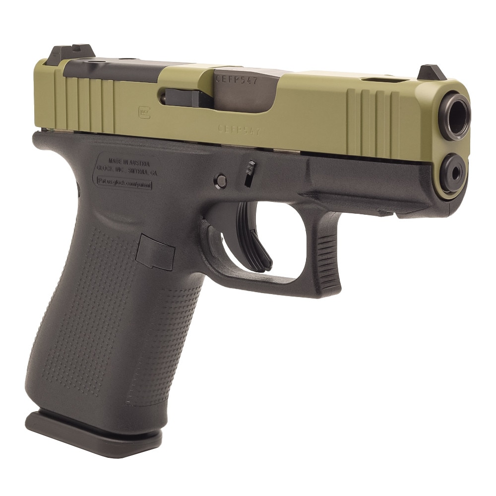 Experience the renowned performance and legendary safety of the Glock 43X w/ GS C Cut Bazooka Green Slide. As part of the world-famous GLOCK family, this 9mm model is engineered for reliability, accuracy, and durability.