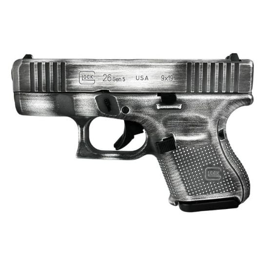 Experience the renowned performance and legendary safety of the Glock G26 Gen5 Custom Distressed White Subcompact 9mm 3.43 10rds, Distressed White. As part of the world-famous GLOCK family, this 9mm model is engineered for reliability, accuracy, and durability.