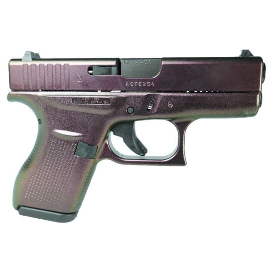 Experience the renowned performance and legendary safety of the Glock G42 Custom Shimmering Razorback Subcompact .380 ACP 3.25 6rds, Rainbow. As part of the world-famous GLOCK family, this 9mm model is engineered for reliability, accuracy, and durability.