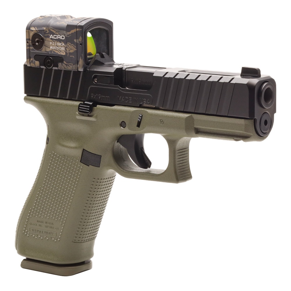 Experience the renowned performance and legendary safety of the GS Custom Glock 45 w/ Noveske DM Slide & Tiger Stripe ACRO. As part of the world-famous GLOCK family, this 9mm model is engineered for reliability, accuracy, and durability.