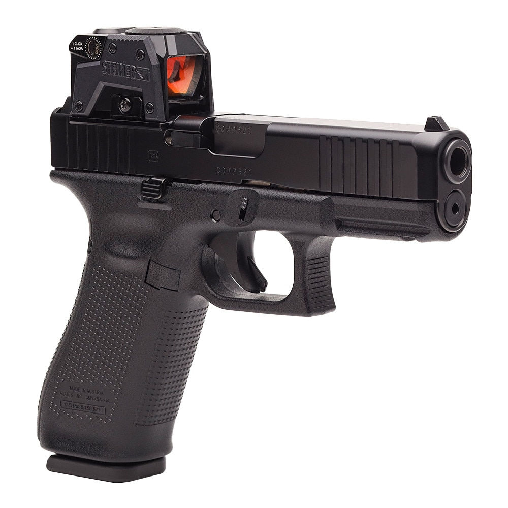 Experience the renowned performance and legendary safety of the GS Optiquipped Glock 45 MOS 9mm w/ Steiner MPS. As part of the world-famous GLOCK family, this 9mm model is engineered for reliability, accuracy, and durability.
